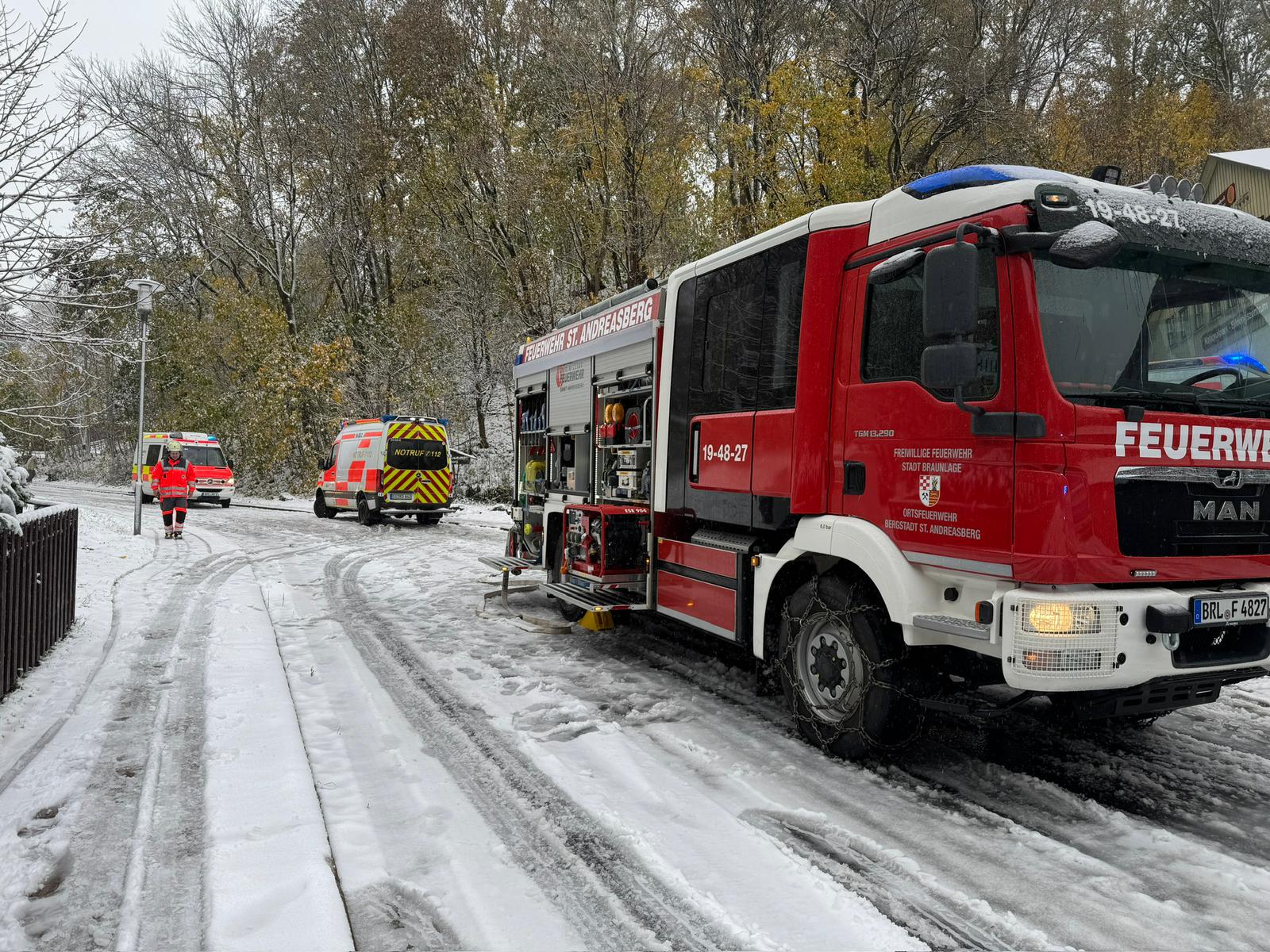 Aufgrund der Wetter- und Straßenverhältnisse wurden die Städtischen Betriebe Braunlage mit Schneeräumfahrzeugen zur Einsatzstelle alarmiert, um eine sichere Anfahrt für die anfahrenden Rettungskräfte sicherzustellen.